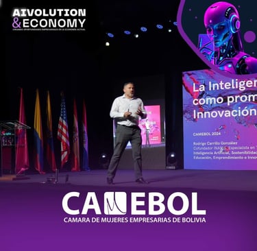 El pasado 11 de octubre de 2024, en Santa Cruz de la Sierra (Bolivia), se celebró el congreso internacional AIVOLUTION & ECONOMY, organizado por la Cámara de Mujeres Empresarias de Bolivia en colaboración con CAMEBOL, que reunió a más de 500 participantes interesados en la transformación digital, la inteligencia artificial y la economía de impacto.