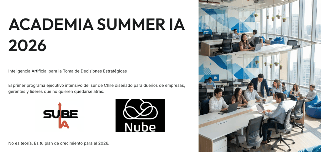 Desde SUBE IA creemos que la verdadera ventaja competitiva no está en acceder a la tecnología, sino en saber usarla con criterio, responsabilidad y propósito. La Academia Summer IA 2026, junto a La Nube Cowork Valdivia, es una invitación a prepararse hoy para los desafíos del mañana.